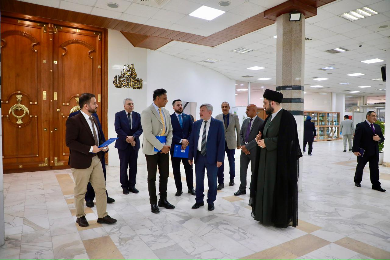 الدكتور إبراهيم بحر العلوم رحب بالضيف الزائر، متمنيا له زيارة ناجحة الى مدينة النجف الاشرف، تحدث بعدها السيد حيدر بحر العلوم مدير إدارة مؤسسة بحر العلوم الخيرية، مقدما شرحا عن نشاطات المؤسسة في عدة مجالات، ثم قدم السيد عميد معهد العلمين شرحا مفصلا عن المعهد والتخصصات والاقسام العلمية فيه، ونبذة عن نشاطاته العلمية والبحثية والأكاديمية. وبعد جولة في اقسام المعهد وقاعاته ومكتبته الكبيرة، القى السيد تيتون ميترا الممثل المقيم لبرنامج الأمم المتحدة الإنمائي في العراق محاضرة على طلبة الدراسات العليا في المعهد من الماجستير والدكتوراه والدبلوم العالي ادارها رئيس قسم العلوم السياسية أ.د محمد ياس خضير، سبقتها كلمة ترحيبية القاها أ د زيد العكيلي عميد المعهد تحدث عن مكانة المعهد واهميته والجهود الكبيرة التي يبذلها باعتباره الذراع العلمي والاكاديمي لمؤسسة بحر العلوم الخيرية.