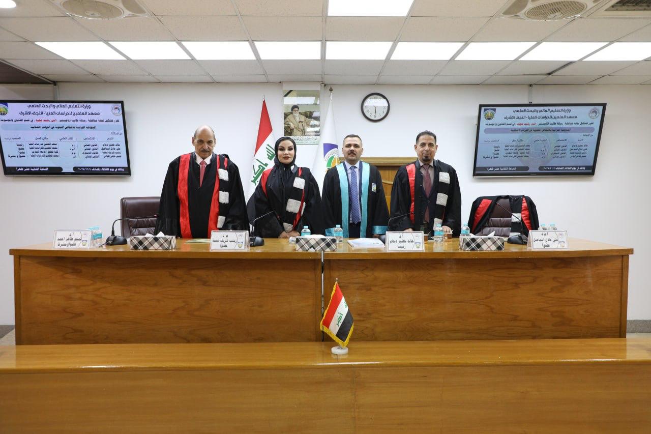 جرت في قسم القانون بمعهد العلمين للدراسات العليا، الثلاثاء 4 تشرين الثاني 2025، مناقشة بحث الدبلوم الموسوم " المسؤولية الجزائية للأشخاص المعنوية عن الجرائم الانتخابية " للطالب "انس رشد مجيد" و ترأس لجنة المناقشة ا.د خالد خضير دحام المعاون الاداري لعمادة معهد العلمين، وضمت لجنة المناقشة ا.م.د علي عادل اسماعيل المعاون العلمي لعمادة معهد العلمين، و م.د زينب شريف نعمه من كلية الحقوق جامعة النهرين، و ا.د تميم طاهر احمد من معهد العلمين عضوا ومشرفا، وبعد مناقشة مستفيضة تم إجازة البحث.
