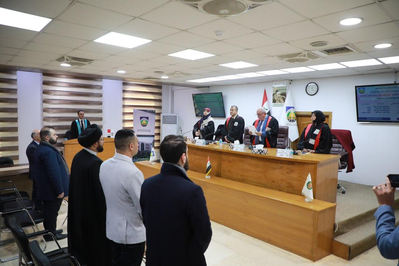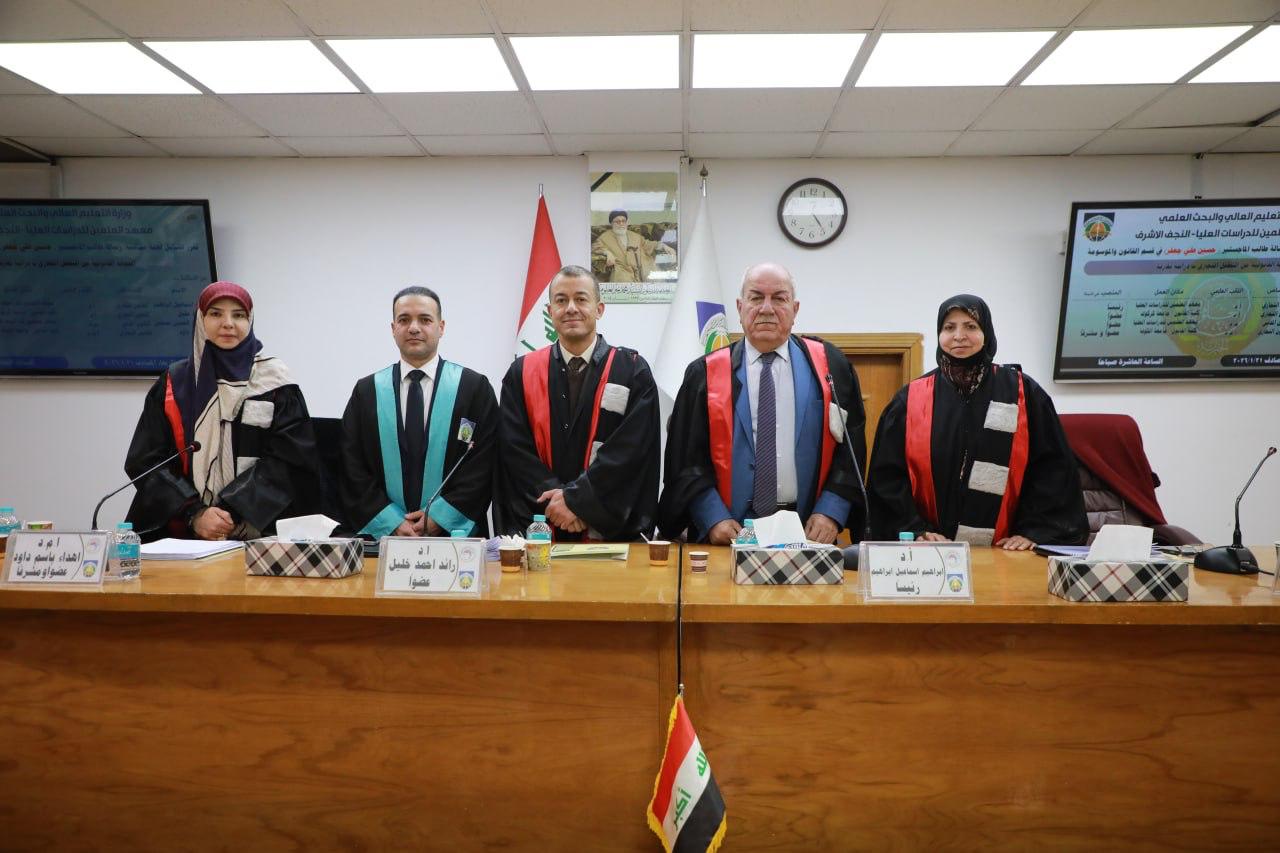 جرت في قسم القانون الخاص بمعهد العلمين للدراسات العليا، الاربعاء ٢١ كانون الثاني 2026، مناقشة رسالة الماجستير الموسومة " الحماية القانونية من التطفل التجاري " للطالب "حسين علي جعفر" و ترأس لجنة المناقشة ا.د ابراهيم اسماعيل ابراهيم رئيس قسم القانون الخاص بمعهد العلمين، وضمت لجنة المناقشة ا.د رائد احمد خليل من كلية القانون والعلوم السياسية جامعة كركوك، وم.د نهضة عبد الحسين مسجين من معهد العلمين، و ا.م.د اهداء باسم داود من كلية القانون جامعة الكوفة عضواً ومشرفاً، وبعد مناقشة مستفيضة تم إجازة الرسالة.