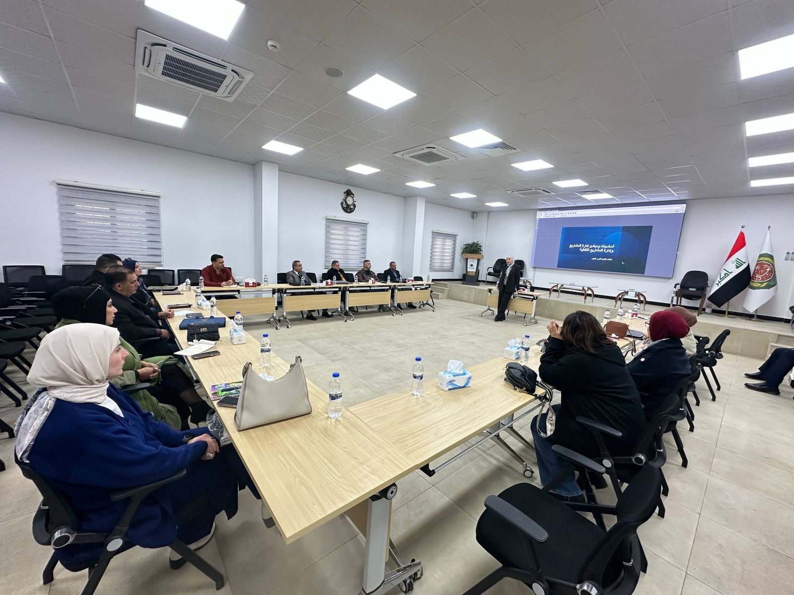 وتضمنت المحاضرة تدريبات عملية ومحاكاة تطبيقية هدفت إلى تنمية مهارات المشاركين في مجالات التخطيط والتنفيذ والمتابعة، وتعزيز قدرتهم على التعامل مع متطلبات المشاريع ذات الطابع التعاقدي، بما ينسجم مع الأطر الإدارية والمهنية المعتمدة.