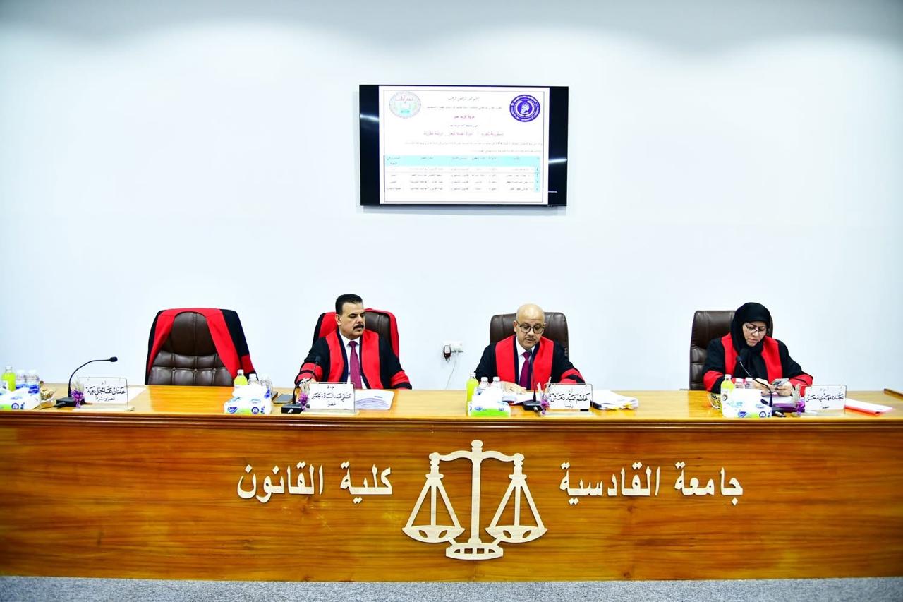 شاركت التدريسية في قسم القانون بمعهد العلمين للدراسات العليا أ.م.د. نجلاء مهدي محسن في عضوية لجنة مناقشة رسالة الماجستير في كلية القانون بجامعة القادسية حملت عنوان " دستورية تجريم قتل المرأة غسلاً للعار - دراسة مقارنة" وتقدمت بها الطالبة "مروة كريم جبر"، وناقشت الرسالة العلاقة القانونية والدستورية بين نص المادة (409) من قانون العقوبات العراقي رقم (111) لسنة 1969 المعدل، وأحكام المادتين (14) و(15) من دستور جمهورية العراق لسنة 2005، وبعد مناقشة مستفيضة تم قبول الرسالة.