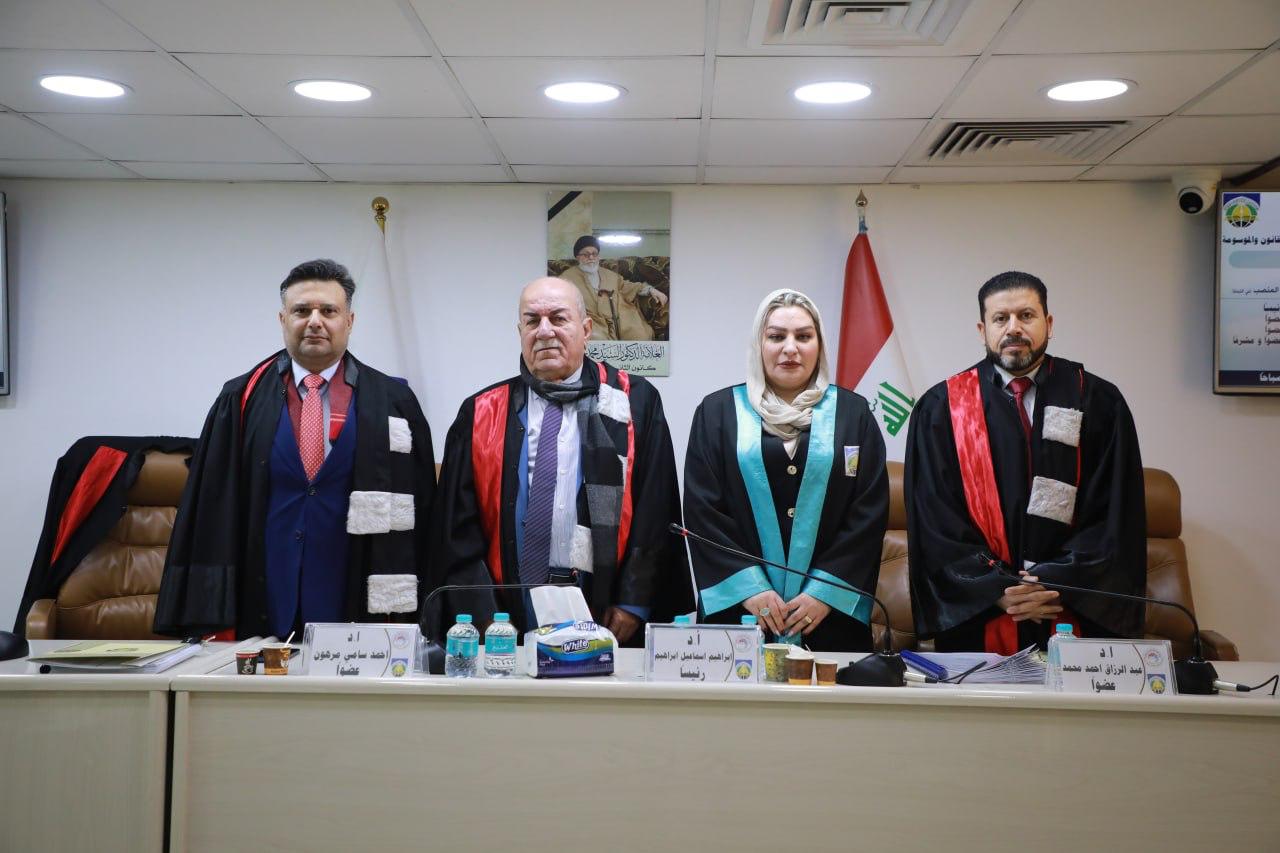 جرت في قسم القانون الخاص بمعهد العلمين للدراسات العليا، الاربعاء ٢٨ كانون الثاني 2026، مناقشة رسالة الماجستير الموسومة "التامين على المصنفات الفكرية الرقمية التجارية - دراسة مقارنة" للطالبة "رانيا مبدر عبد الهادي" و ترأس لجنة المناقشة ا.د ابراهيم اسماعيل ابراهيم رئيس قسم القانون الخاص بمعهد العلمين، وضمت لجنة المناقشة ا.د احمد سامي مرهون من كلية القانون  جامعة الكوفة، وا.د عبد الرزاق احمد محمد من معهد العلمين، و ا.م.د لطيف جبر كوماني من معهد العلمين عضواً ومشرفاً، وبعد مناقشة مستفيضة تم إجازة الرسالة.