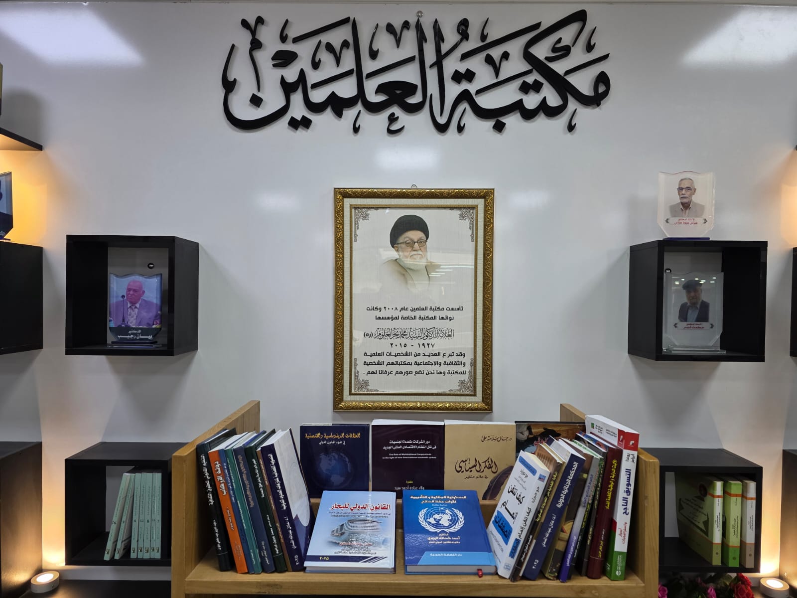 وأوضحت الخفاجي ان سعادة السفير محمد حسين بحر العلوم اهدى مكتبة العلمين 29 كتابا مختلفا وهي السفير الدكتور محمد حسين بحر العلوم، وهي اليوبيل الفضي اتحاد الجمعيات العراقية في السويد/ اتحاد الجمعيات العراقية، والعلاقات العراقية البريطانية واقعها وافاقها المستقبلية 2014-2023 محمد جواد الاشيقر، وتاريخ مقاهي بغداد القديمة مع دراسة خاصة بمقهى الشابندر تاليف: زين النقشبندي، وتحفة المشكور في الصلاة والسلام على رسول الغفور الشكور صلى الله عليه واله وسلم تاليف: رزاق سلمان المشكور، والمدرسة الوطنية الاهلية "تراث خالد ومستقبل واعد" اعداد: محمد حسن عوده، والمؤتمر الطبي العراقي الأول في المملكة المتحدة/ يغطي هذه التتقرير اهم الجوانب التي ترى في حدث الكونجرس الطبي العراقي الأول في عاصمة المملكة المتحدة- لندن سفارة جمهورية العراق، وارض جاهزة للفاشيين تقرير عن اعدام من لا يعدم فارس حرام، وكيف صار التونسيون تونسيين -رحلة "حنون" معاصر في رحاب التاريخ- الهادي التيمومي، ودروس الميرزا رحلة في عالم السلوك تاليف: علي المؤيد، ورجل الله في العراق حياة وقيادة اية الله العظمى علي السيستاني سجاد جياد؛ ترجمة: حسان حساني، وبروتوكول الزيارات الثنائية والمؤتمرات الدولية أداء البعثات والوفود علي هلال، وعدني يا ابي عام من الامل والمعاناة والهدف جو بايدن؛ ترجمة: عائشة يكن، ودبلوماسية الازمات وصراع القوى الثلاث احسان علاوي، احمد نزار جميل، ووثائق الدورة الكاملة الرابعة للجنة المركزية العشرين للحزب الشيوعي الصيني ترجمة: معهد تاريخ ووثائق الحزب التابع للجنة المركزية، والفوائد النجفية في شرح الوصية الكاظمية إيضاح وصية الامام الكاظم عليه السلام الشهيرة لهشام بن الحكم جواد السيد علاء الموسوي الهندي، ووسام وليد الناشئ أسلوب تشكيلي لم يكتمل سعدي عواد السعدي، وسياسة المانيا تجاه خروج بريطانيا من الاتحاد الأوربي (بريكست) محمد جواد الاشيقر، وجريمة اغتيال الوسيط الدولي في فلسطين الكونت فولك برنادوت يوران بورين؛ ترجمة: سامح خلف، وكتاب صلاح الخرسان وثيقة وحقيقة عقود من الجهاد والتأليف والعمل مؤتمر علمي- تأبيني اعداد: سارة صباح، محمد الفتى القاموسي؛ اشراف: احمد الحلو، مجلة لمحات رئيس التحرير: علاء حميد ادريس، ومجلة الرواق رئيس التحرير: علاء حميد، وجدلية فرضيات الوردي وارائه في طبيعة المجتمع العراقي دراسة نقدية قيس الخزعلي، وآل معرفي سيرة عائلة كويتية ساهمت في بناء الوطن عبر التاريخ الافراد يبنون العائلات والعائلات تبني الأوطان جمع وتحقيق: مجموعة من أبناء ال معرفي، والقانون الدولي الانساني علي زعلان نعمة، حيدر كاظم عبد علي، محمود خليل جعفر,  و